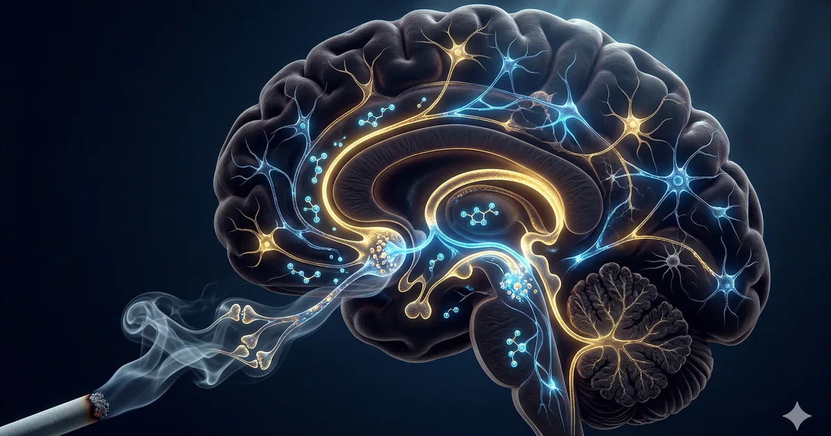 Nikotin akciğerlere ulaştıktan sonra 10 saniye içinde beyne erişir. Beyindeki nikotinik asetilkolin reseptörlerine (nAChR) bağlanarak dopamin, serotonin ve norepinefrin salgılanmasını tetikler. Bu nörotransmiterler anlık bir haz ve rahatlama hissi yaratır — işte bağımlılık sarmalının başlangıç noktası burasıdır.